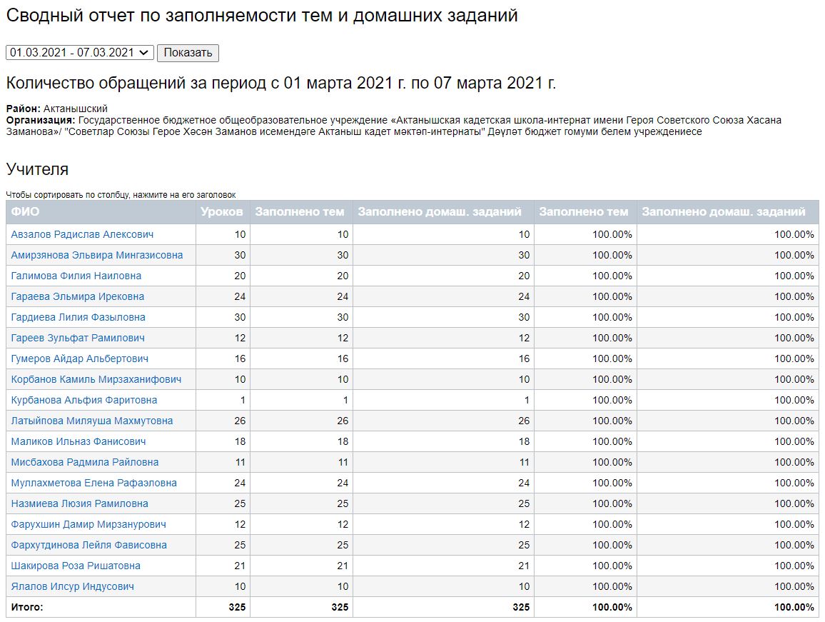 Сводный отчет по заполняемости тем и домашних заданий (01-05.03.2021)