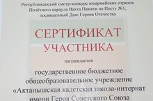 Наша школа приняла участие в республиканском смотр-конкурсе юнармейских отрядов Почетного караула Вахта Памяти на посту №1, посвященном Дню Героев Отечества и получила сертификат участника.