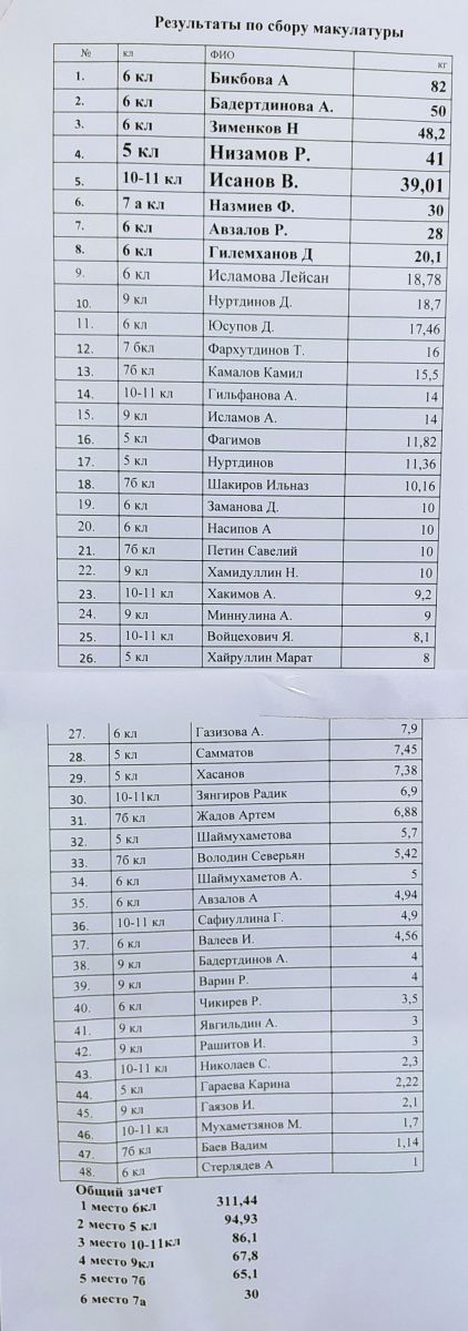 В феврале были подведены итоги акции. Было собрано 650 кг макулатуры.