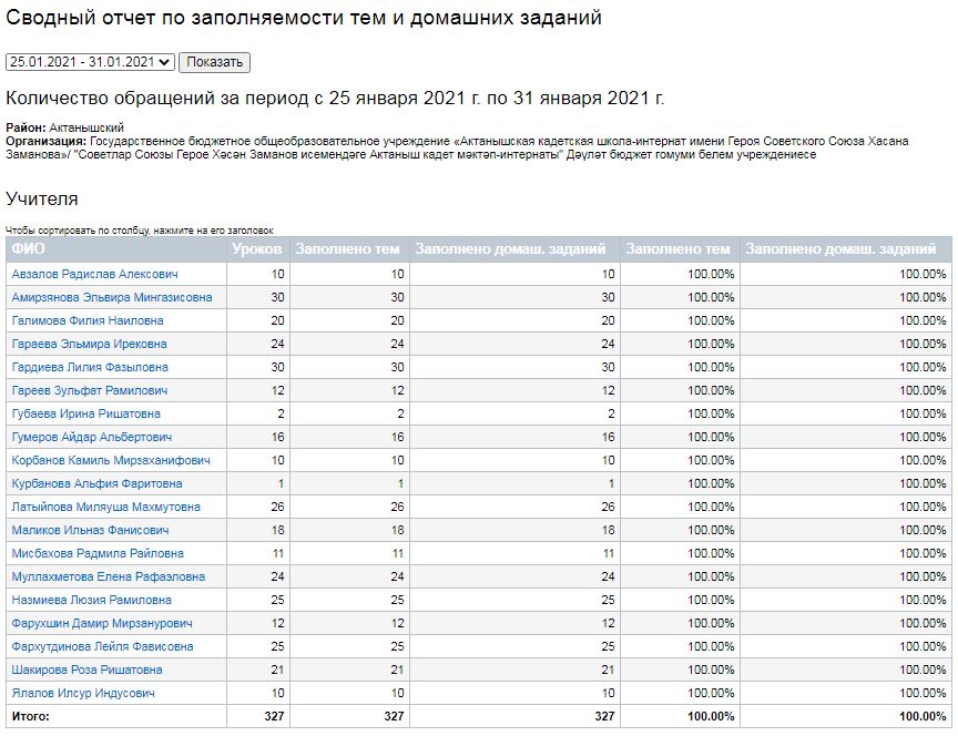 Сводный отчет по заполняемости тем и домашних заданий (25-30.01.2021)