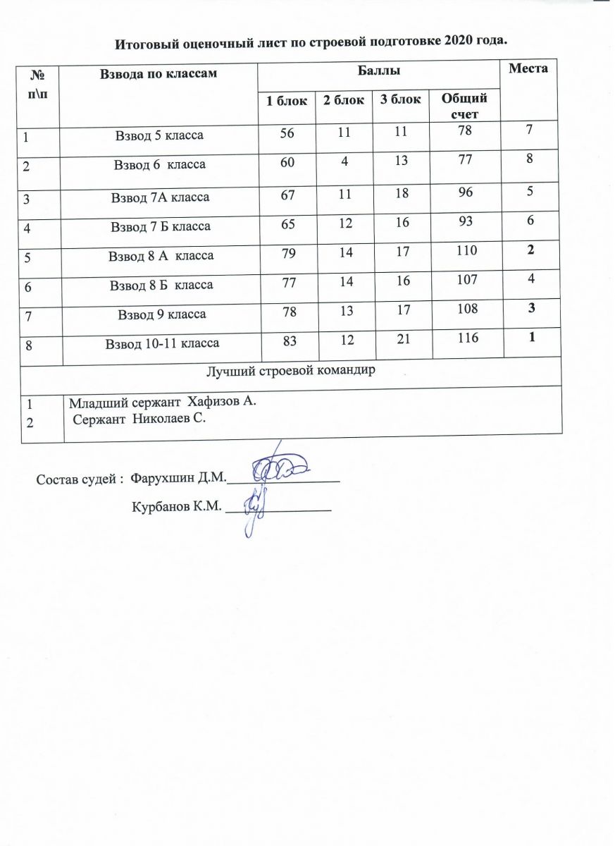 Итоги школьного конкурса "Строевой смотр" 01.12.2020