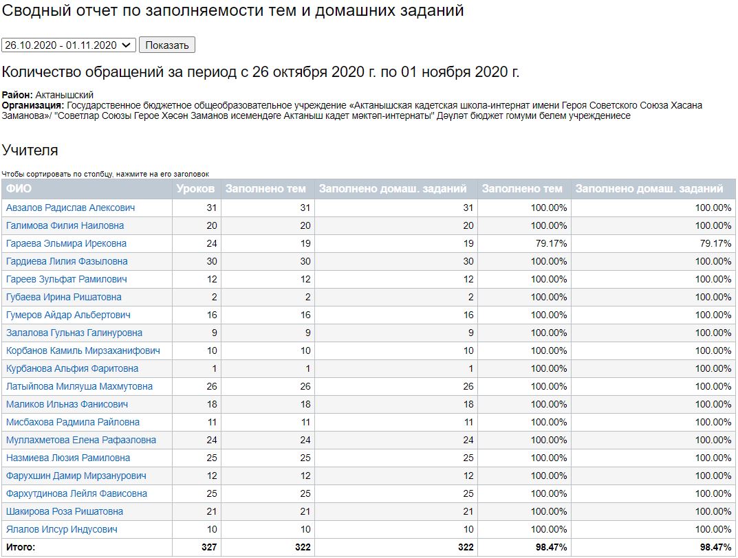 Сводный отчет по заполняемости тем и домашних заданий (26-30.10.2020)