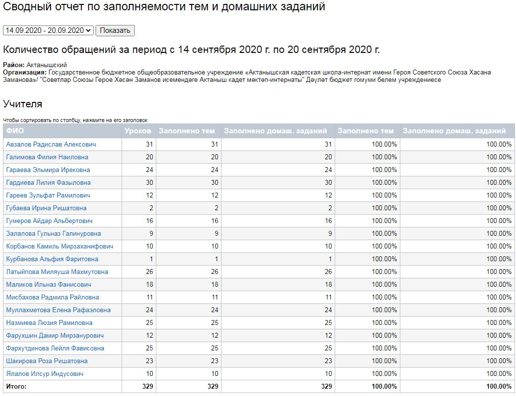 Сводный отчет по заполняемости тем и домашних заданий (14-18.09.2020)