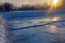 Прошла заливка школьной хоккейной коробки, где ученики активно играют хоккей и катаются на коньках. Каток кадеты сами заливают, очищают от снега.