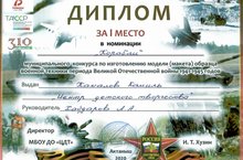 ученик 8 класса Хафизов Артур - II место в номинации "Авиация" и награждён Дипломом, руководитель Корбанов К.М.