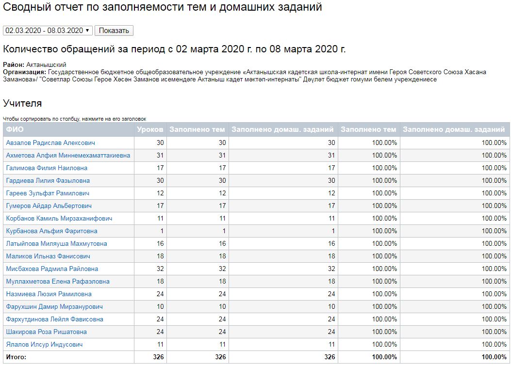 Сводный отчет по заполняемости тем и домашних заданий (02-07.03.2020) 10.03.2020