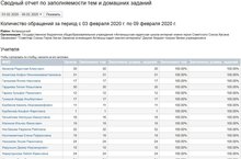 Сводный отчет по заполняемости тем и домашних заданий (03-09.02.2020) 11.02.2020