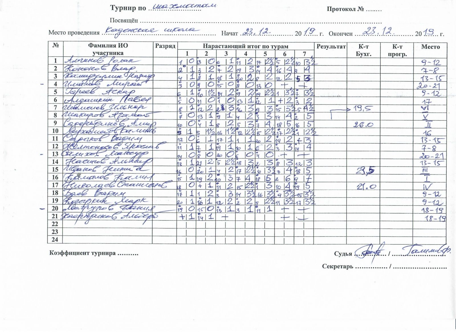 23 декабря в школе состоялся школьный турнир по шахматам.