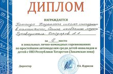 11 декабря в с.Актаныш прошли зональные лично-командные соревнования по простейшим автомоделям среди детей-инвалидов и детей с ОВЗ РТ , где команда нашей школы заняла III место в номинации "Самая необычная модель". Поздравляем и желаем дальнейших побед!