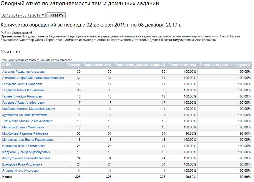 Сводный отчет по заполняемости тем и домашних заданий (02-07.12.2019) 09.12.2019