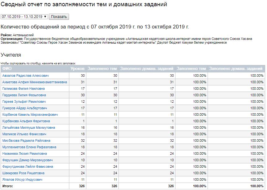 Сводный отчет по заполняемости тем и домашних заданий (07-13.10.2019) 14.10.2019