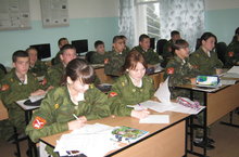 Ребята показывали свое умение в разборке и сборке автомата Калашникова, беге на 60 м., военно-спортивной игре, подтягивании на перекладине, метании гранаты, строевой подготовке, снаряжении магазина автомата Калашникова и др.