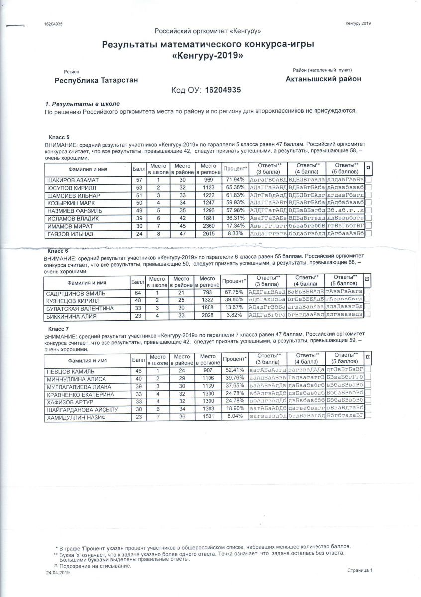Итоги международного конкурса-игры "Кенгуру" 23.05.2019