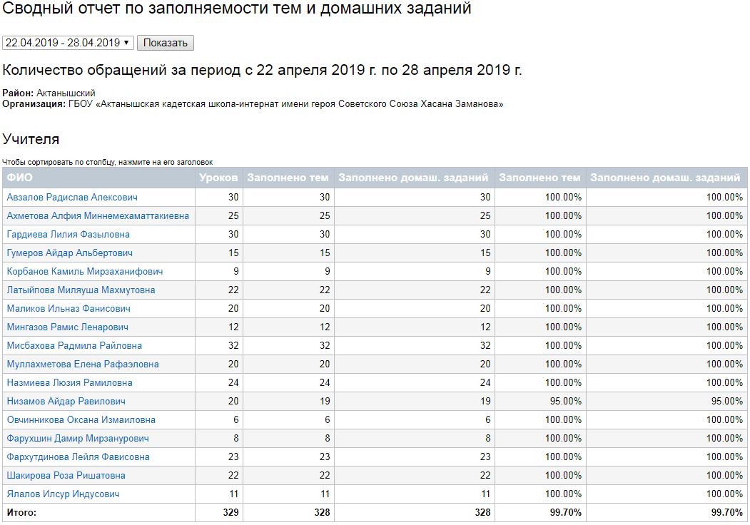 Сводный отчет по заполняемости тем и домашних заданий (22-27.04.2019) 29.04.2019