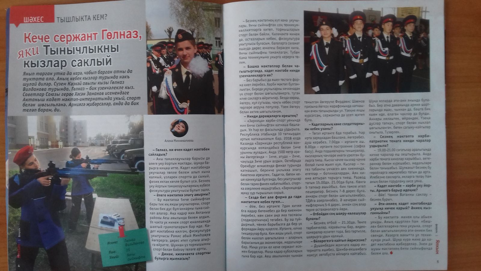 Опубликована статья "Армияга барыр идем!" ученицы 9а класса нашей школы Вильдановой Г. в республиканском журнале "Ялкын" , №2(01.02.2019)