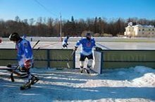 Летом хоккейная коробка используется для игры в мини-футбол.