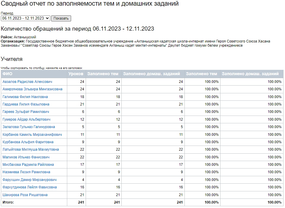 Сводный отчет по заполняемости тем и домашних заданий (07-10.11.2023) 13.11.2023