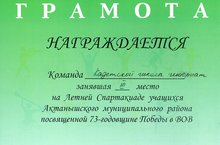 19 мая на стадионе с. Актаныш состоялась Летняя Спартакиада учащихся Актанышского муниципального района, где команда Актанышской кадетской школы-интерната заняла III место и награждена грамотой, а каждому участнику-победителю и призёру команды вручена грамота.