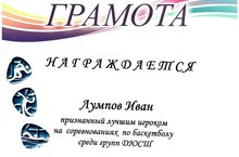 Ученик 9 класса нашей школы Лумпов Иван признан лучшим игроком на соревнованиях по баскетболу среди групп ДЮСШ. Поздравляем и желаем дальнейших успехов!