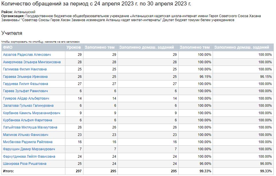 Сводный отчет по заполняемости тем и домашних заданий (24-28.04.2023)