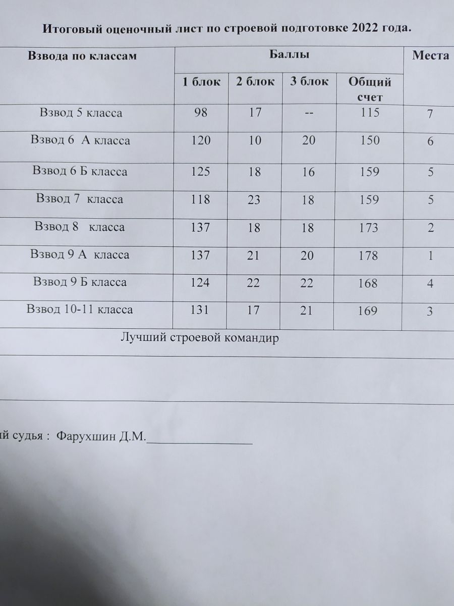 Награждение школьного конкурса "Строевой смотр" 06.12.2022