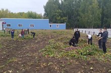 Сентябрьская погода порадовала нас тёплым солнечным деньком и мы учащиеся 9-10 классов, вооружившись перчатками, вёдрами и вилами, отправились на пришкольные участки, собирать урожай.