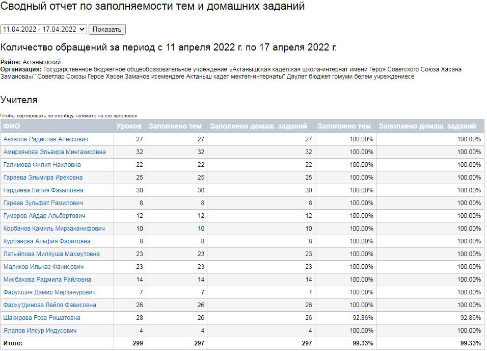 Сводный отчет по заполняемости тем и домашних заданий (11-16.04.2022)