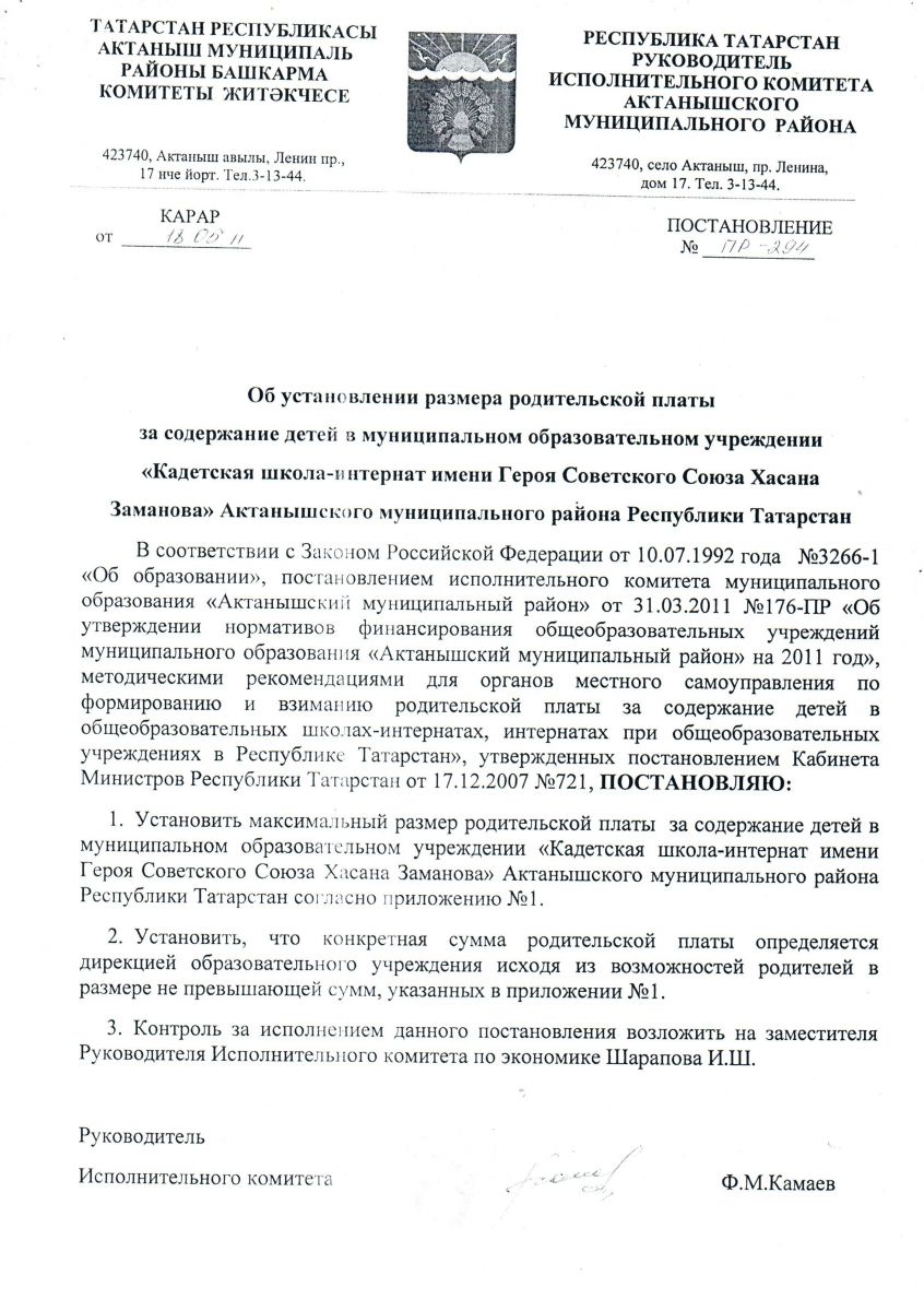 С1 января 2018 года родительская плата за содержание ребенка в ГБОУ "Актанышская КШИ" не взимается.
