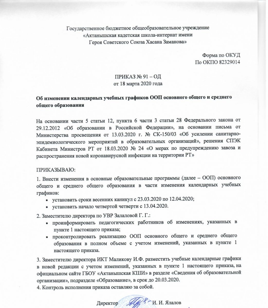 ПРИКАЗ № 102 – ОД от 20 мая 2020 года о досрочном завершении 2019/20 учебного года