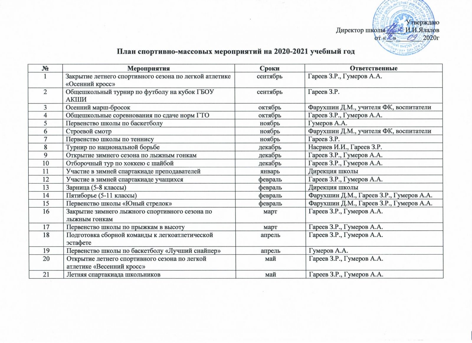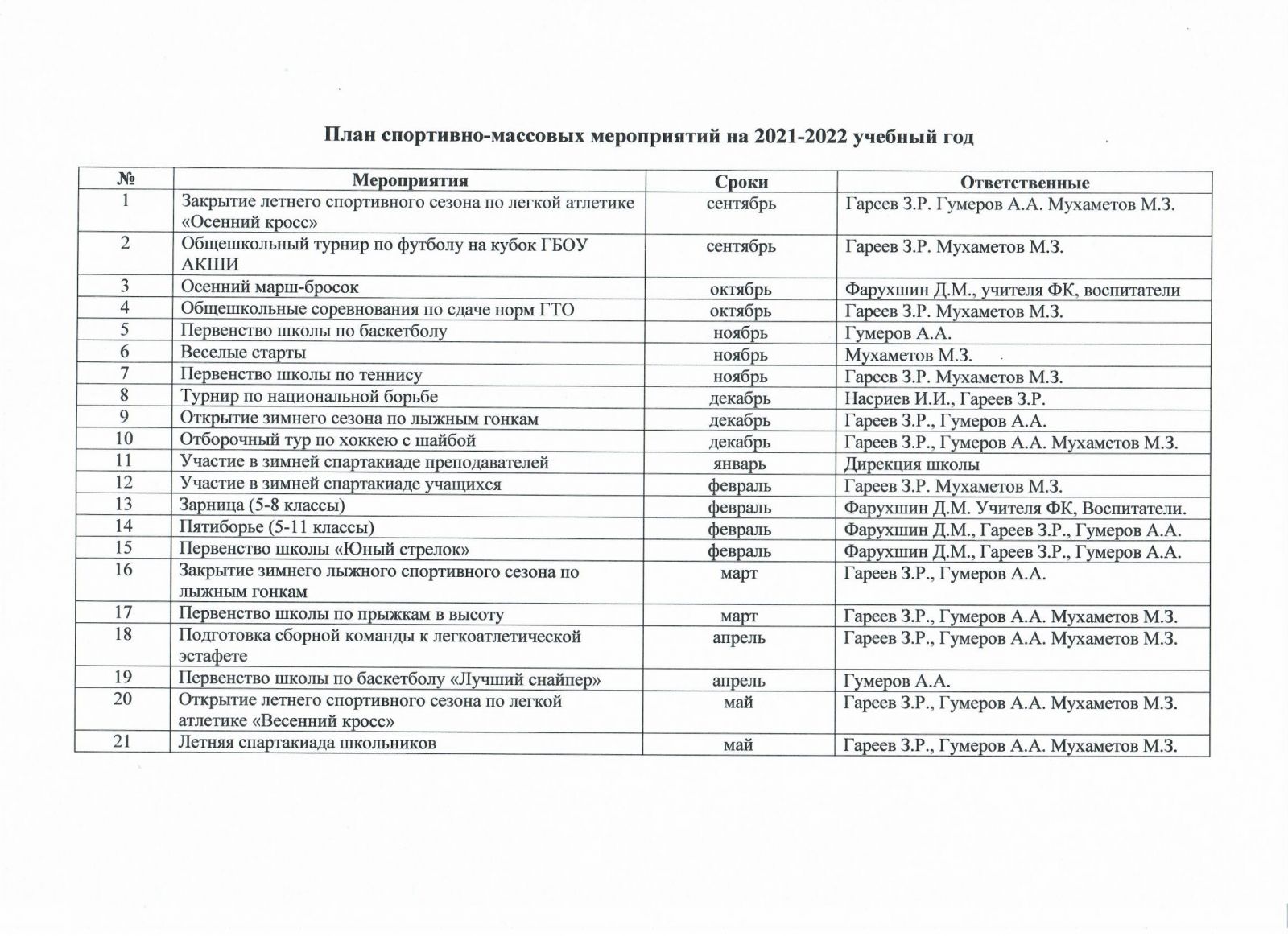 План спортивно-массовых мероприятий на 2021-2022 учебный год