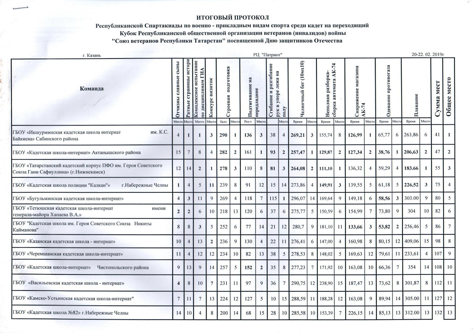 Итоги республиканской спартакиады по военно-прикладным видам спорта среди кадет на переходящий Кубок Республиканской общественной организации ветеранов войны "Союз ветеранов РТ"