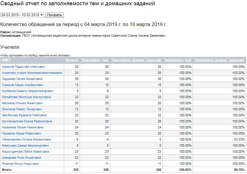 Сводный отчет по заполняемости тем и домашних заданий (04-10.03.2019)