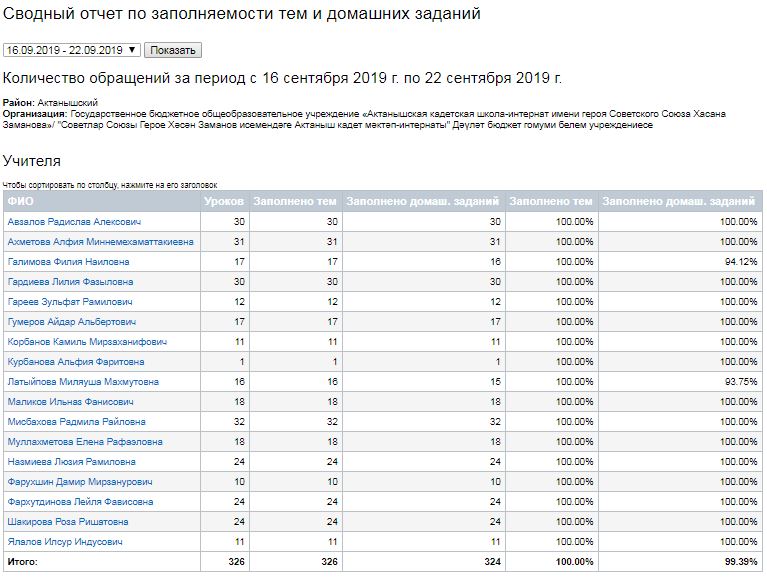 Сводный отчет по заполняемости тем и домашних заданий (16-21.09.2019)