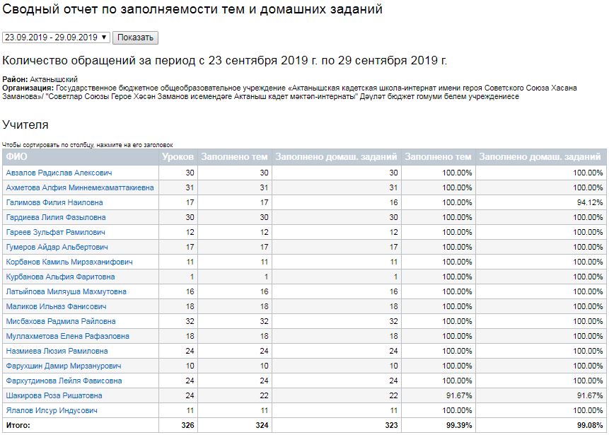 Сводный отчет по заполняемости тем и домашних заданий (23-29.09.2019)