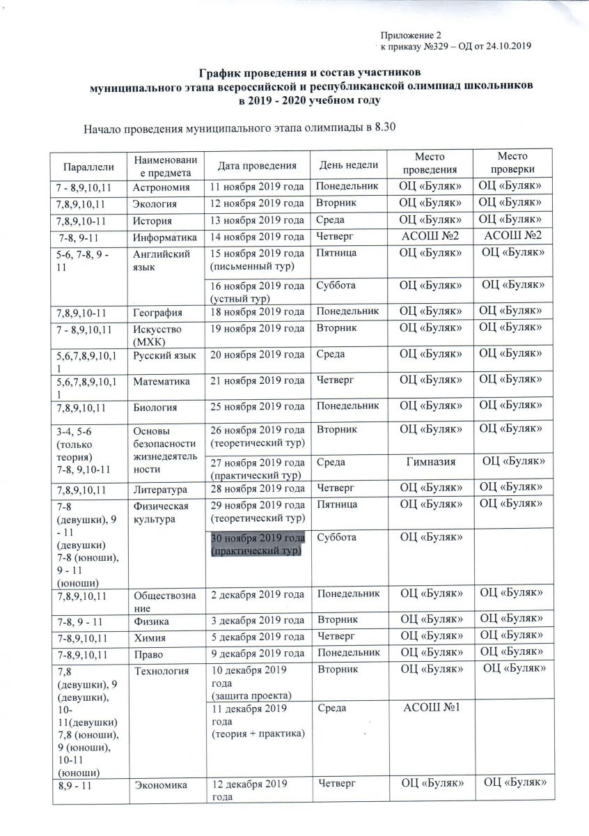 Опубликовано: 08.11.2019С 11 ноября начинается муниципальный этап всероссийской и республиканской олимпиад школьников в 2019-2020 учебном году. В этом году олимпиада охватит 24 общеобразовательных предмета.