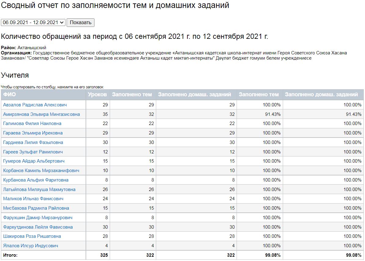 Сводный отчет по заполняемости тем и домашних заданий (07-11.09.2021)