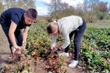 В хорошие осенние дни ученики убирали красную свеклу и складывали ее на зиму. все мы с любовью едим красную свеклу, которую используют при приготовлении различных салатов. Оно очень полезно. Продукт эффективно очищает кишечник от шлаков, сосуды от холестериновых бляшек, снижает риск развития атеросклероза, инфаркта, инсульта. Регулирует процесс кроветворения, обмен веществ в организме. Снижает кровяное давление у гипертоников. Помогает справиться с хроническим алкоголизмом.