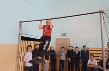 Февраль-спортивный, военно-патриотический месяц. Ребята каждый день проходят какое-то испытание. Один из видов проверки их сил сегодня-подъем на турнике. Подготовка к армии начинается с самого раннего возраста.