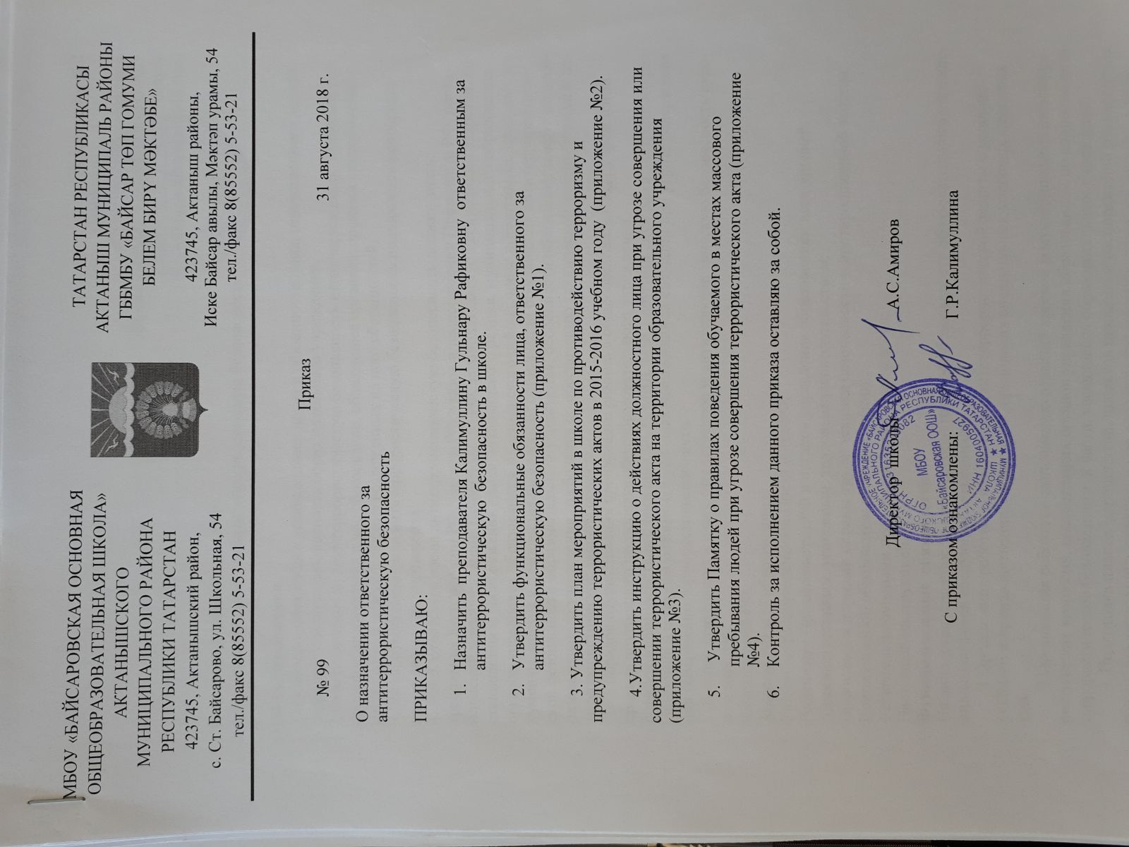 Приказ о назначении ответственнго за антитеррористическую безопасность 2020