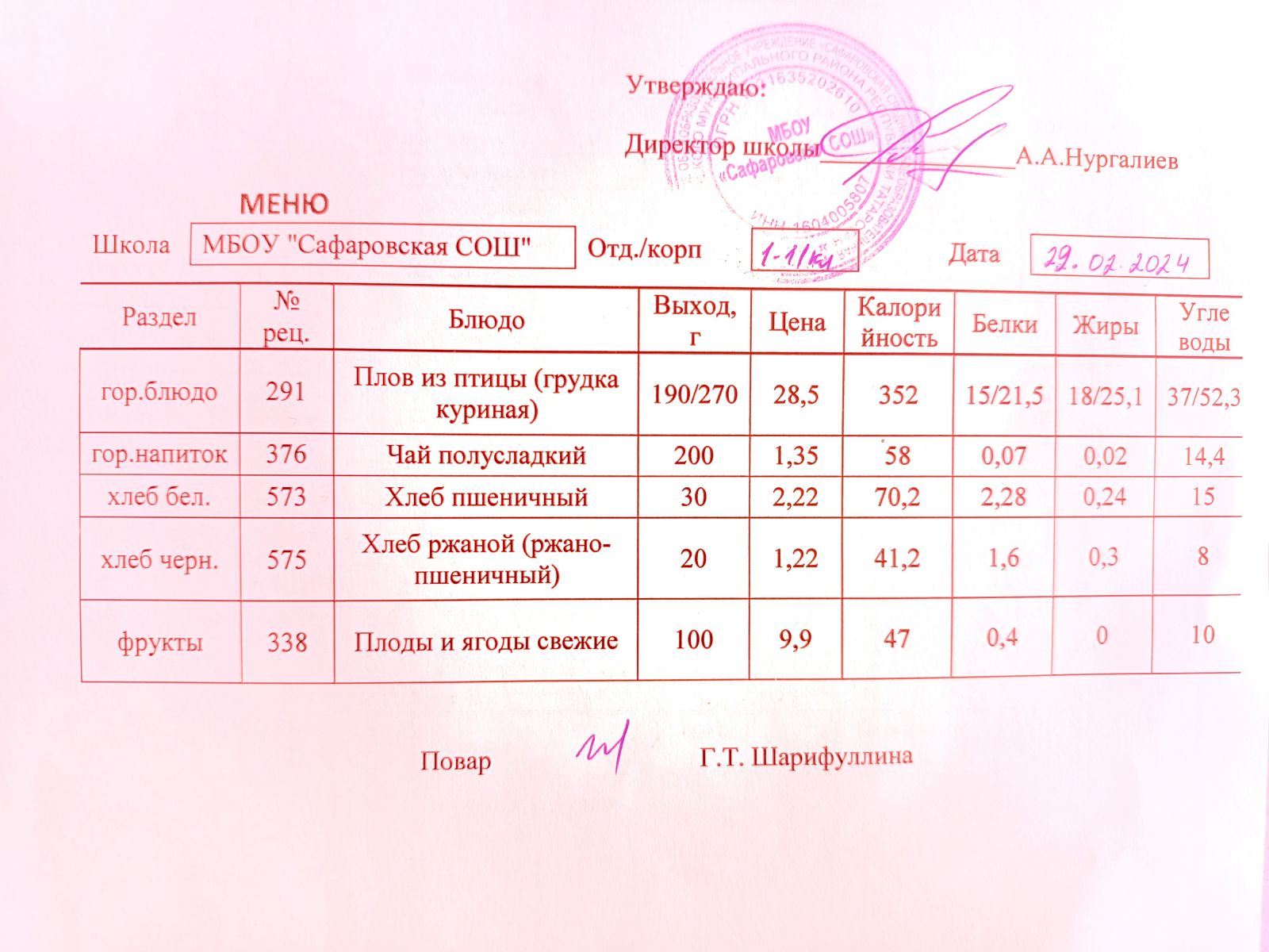 | Короткое название: | МБОУ "Сафаровская СОШ" |