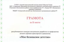 Республикакүләм үткәрелгән "Мое безопасное детство" бәйгесендә бакчабыздан Раянов Раильнең эше 2 нче урынга лаек булды. Афәрин, котлыйбыз!