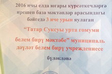 27 нче гыйнвар көнне мәдәният сараенда районыбызның алдынгылары слеты үткәрелде. Бу бәйрәмдә мәктәбебез коллективына 2016 нчы елда югары күрсәткечләргә ирешеп база мәктәпләре арасындагы бәйгедә 3 нче урын яулаган өчен диплом тапшырылды.