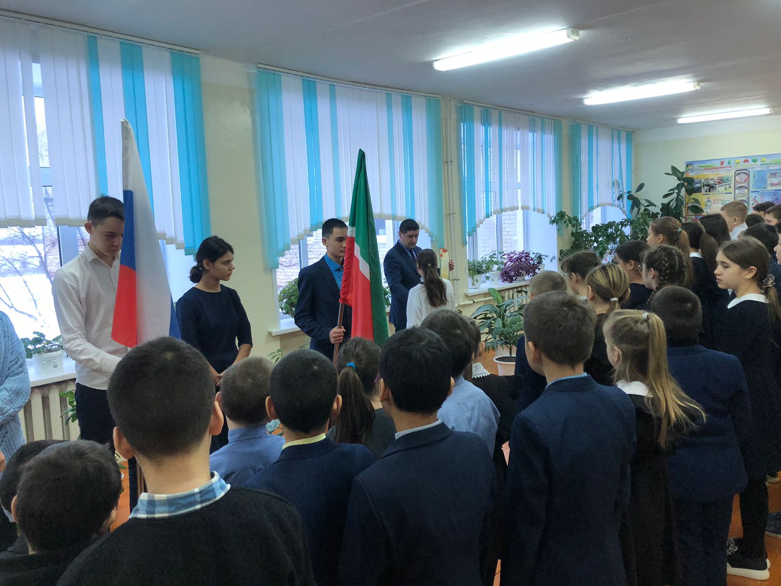 Гадәттәгечә, яңа уку атнасы мәктәп күләмендә үткәрелә торган линейкадан башланды. Бүгенге “Разговоры о важном – Мөһим темага сөйләшү” сыйныф дәресләренең темасы "Конституция көне". Барлык сыйныфларда да үткәрелде.