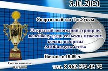 Межрайонный турнир по волейболу 03.01.2021 ТАТАР СУЫКСУЫ ҖИРЛЕГЕНДӘ РАЙОНАРА ВОЛЕЙБОЛ ЯРЫШЫ БАРА Бүген Татар Суыксуы авыл җирлегендә волейбол буенча ачык яңа ел турниры үтә. Айнур Ирек улы Бикмөхәммәтов призына үтүче ярыша быел өченче тапкыр гамәлгә куела. Шунысы сөенечле, волейбол ярышларының географиясе елдан-ел киңәя. Быел чарага Татар Суыксуы җирлеге ике команда куйса, Актанышбш, Богады, Киров, Чалманарат, Актаныш җирлекләре берәр команда тәкъдим итте. Ярышларда Мөслим волейбол командасының катнашуы чарага “районара” дигән статус та өсти. Чараның тантаналы ачылышында командаларны район башлыгы урынбасары Рәйхан Галимҗанова сәламләп, егетләргә нәтиҗәле уен, лаеклы җиңүләр теләде. Шактый кискен барган ярышларны районның волейбол федерациясе җитәкчесе Ильяс Мирзаянов белән бергә җирлек башлыклары, мәктәп директорлары да күзәтә. Сегодня проходит межрайонный турнир по волейболу на приз Бикмухамметова Айнура Ирековича