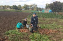 Бакчада хезмәт 05.09.2019 Мәктәп бакчасында уңыш җыю дәвам итә. Бүген бәрәңге алынды.