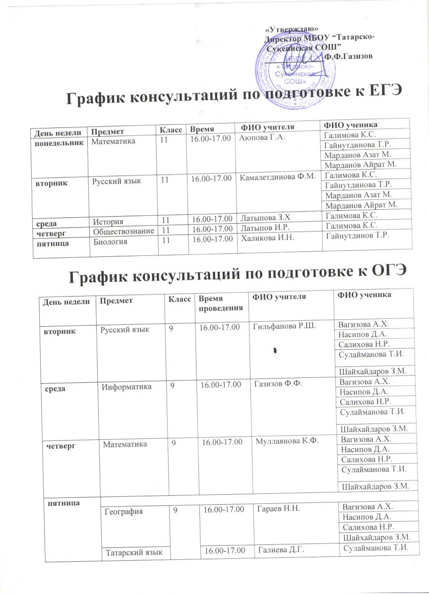 График консультации к ОГЭ ЕГЭ - 2019