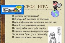 Занятие в форме известной телевизионной игры позволило учащимся показать свои знания по трем учебным направлениям: физика, математика и информатика. Для этого необходимо было восьмиклассникам обладать навыками ориентироваться в нестандартной ситуации, уметь «переключаться» с одного предмета на другой. Победителем игры стал Вакилов Ленар. Мингазетдинова Лейля – 2место, Харисов Айнур – 3 место. Спасибо всем за игру! Учитель: Гараева А.Ф.