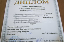 13 май көнне Актаныш гуманитар гимназия-интернат базасында Гамил Афзал исемендәге V республика фәнни-тикшеренү конференциясе үтте. Математика укытучысы Гараева А.Ф. "Математика дәресләрендә Федераль дәүләт белем бирү стандарты" темасы буенча проект яклады һәм диплом белән бүләкләнде. Котлыйбыз!
