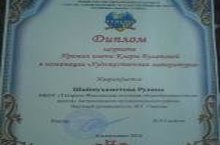24 март көнне Әлмәт дәүләт муниципаль хезмәт институты оештырган Клара Булатова исемендәге премия бирү конкурсында 8 нче класс укучысы Шаймухаметова Рүзинә үзенең иҗат эшләре белән катнашып, “Матур әдәбият” номинациясендә лауреат дипломына һәм бүләккә лаек булды. Җитәкчесе татар теле һәм әдәбияты укытучысы Ф.Г.Гаянова.