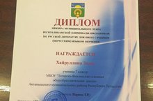 Укучыбыз Хайруллина Зилә рус әдәбияты фәне олимпиадасыннан призер булды! Укытучы: Варина Т.Р. Котлыйбыз!